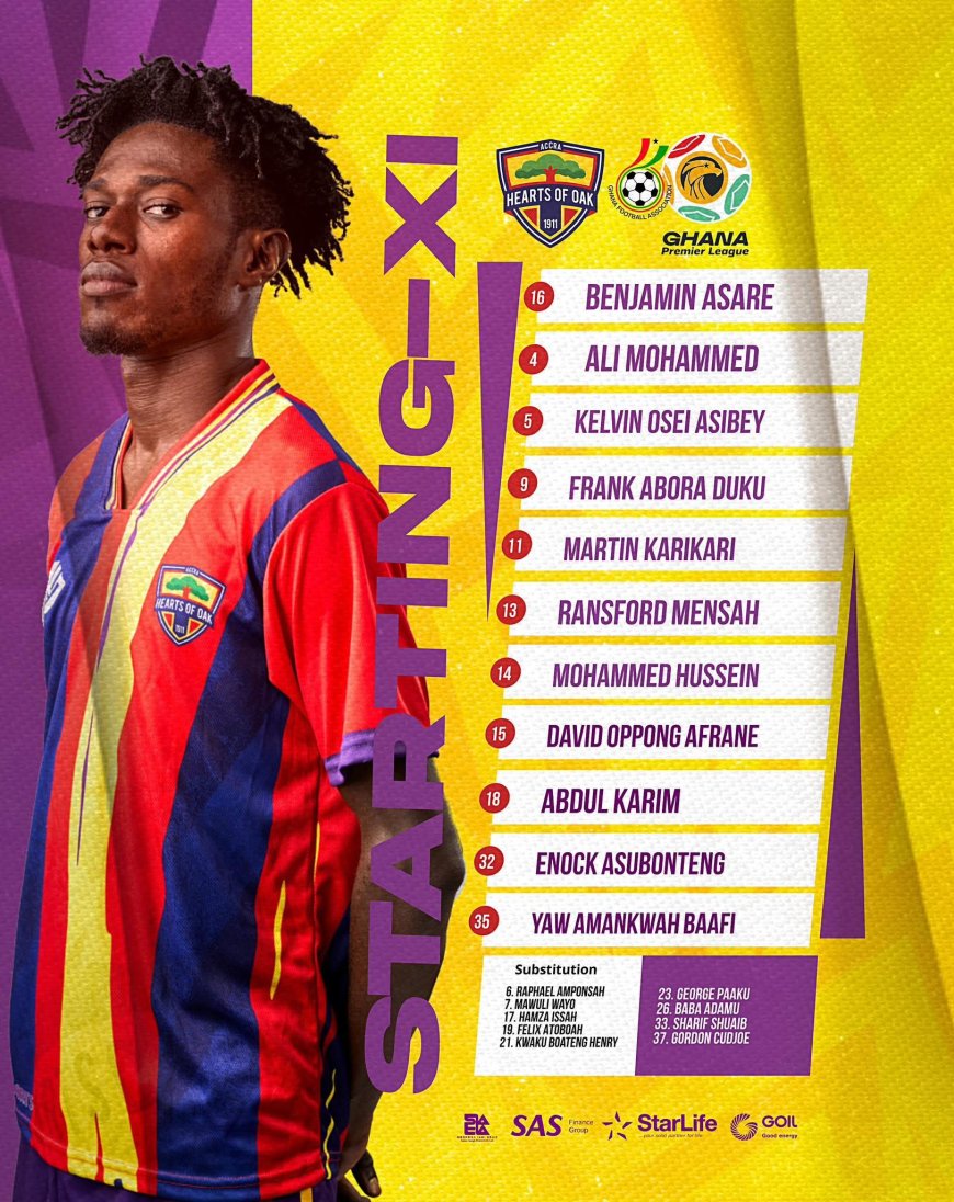 Head coach of Accra Hearts of Oak, Didi Dramani, has announced a strong starting lineup to face Hohoe United in the Ghana Premier League.