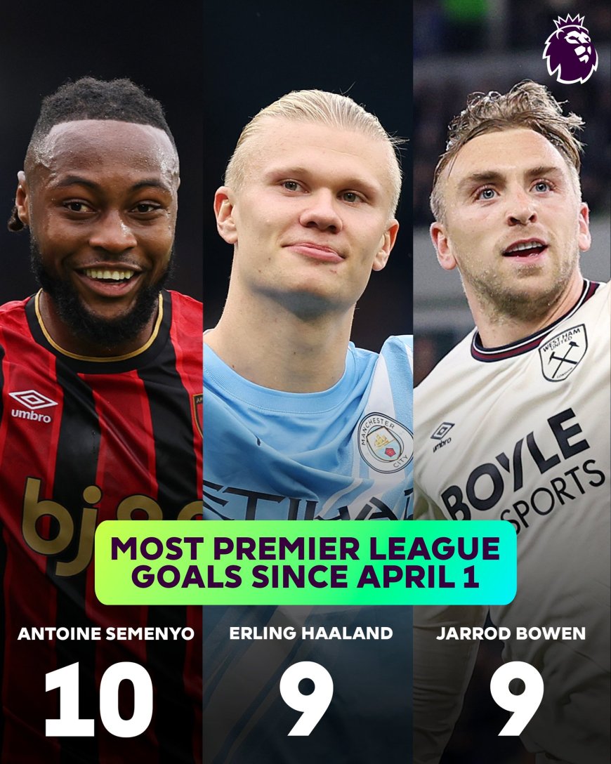 Since the start of April, no player has scored more Premier League goals than Antoine Semenyo .