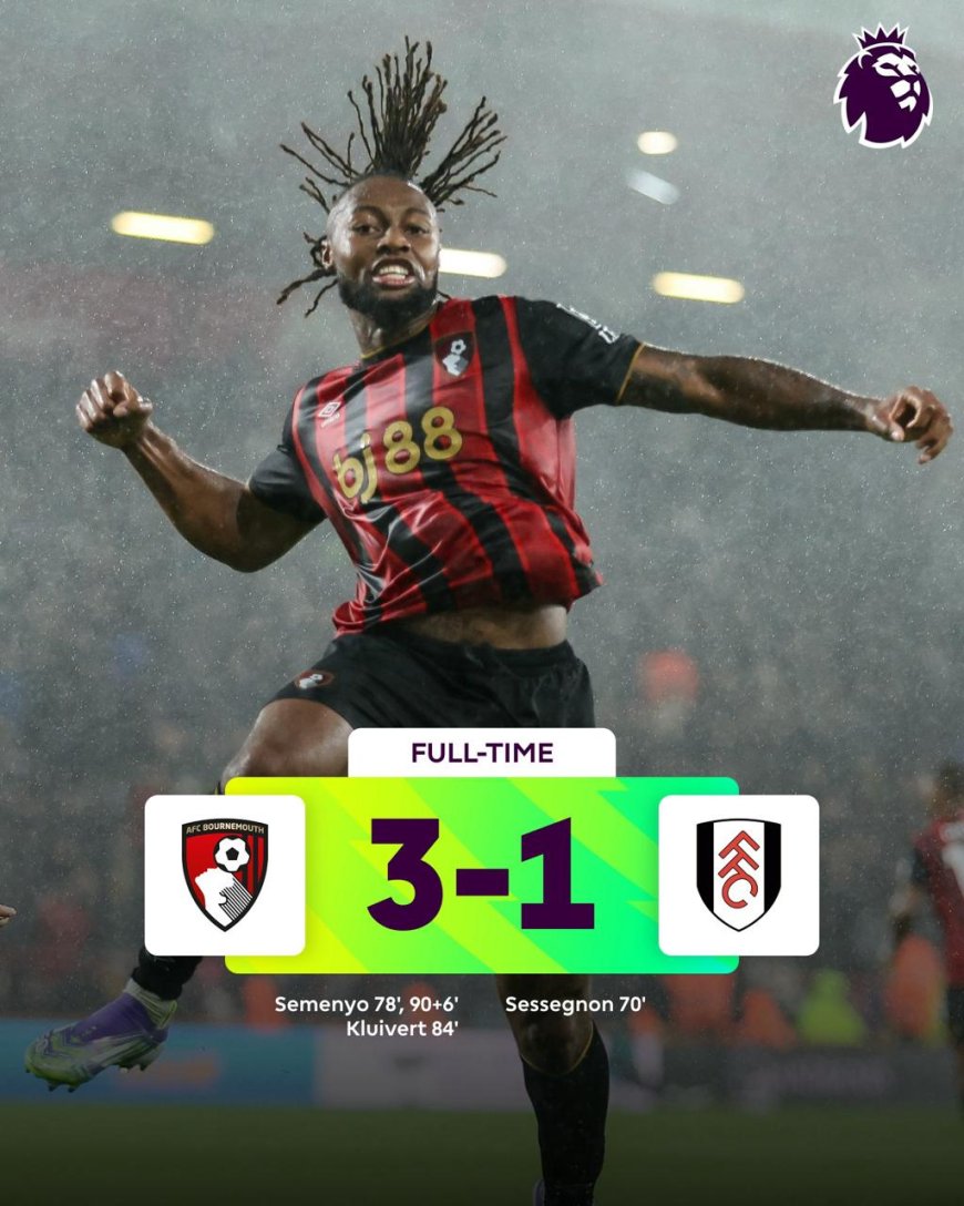On April 14, 2025, Semenyo scored his tenth goal of the season, giving Bournemouth a 1-0 win over Fulham and ending their run of six matches without a Premier League win.